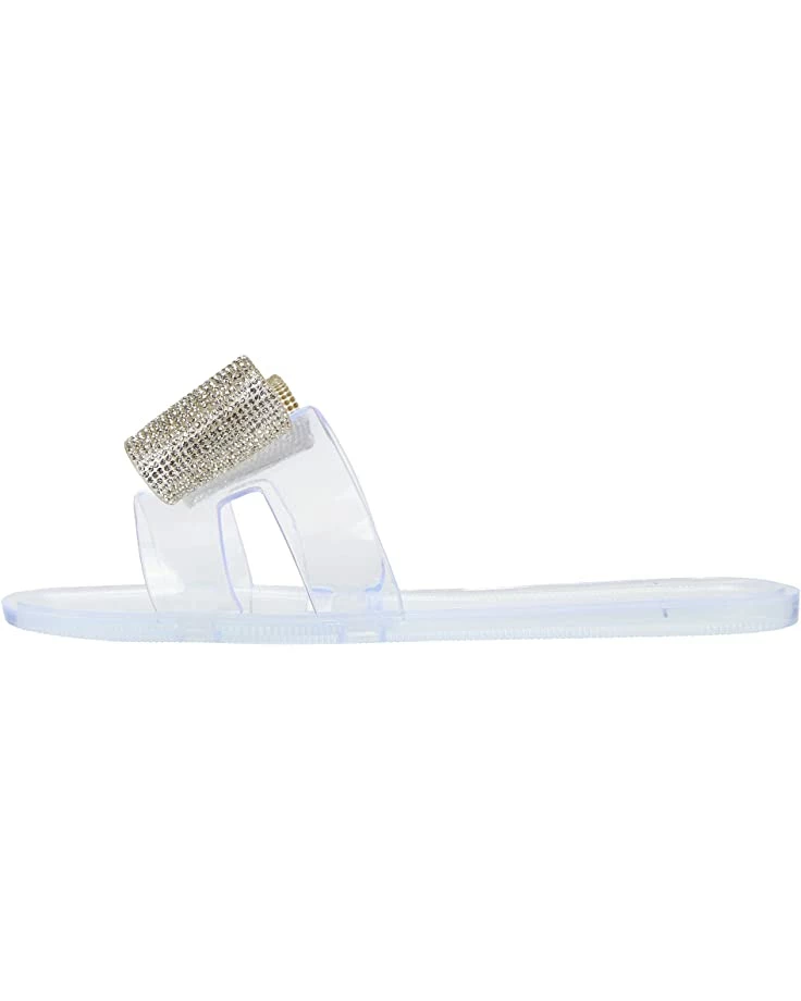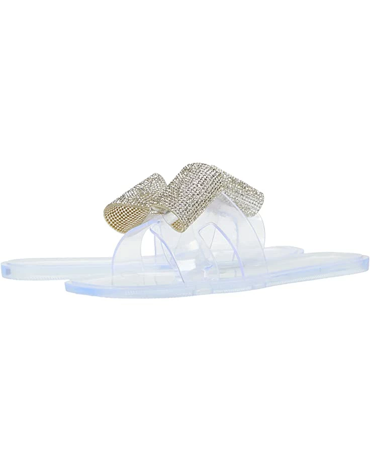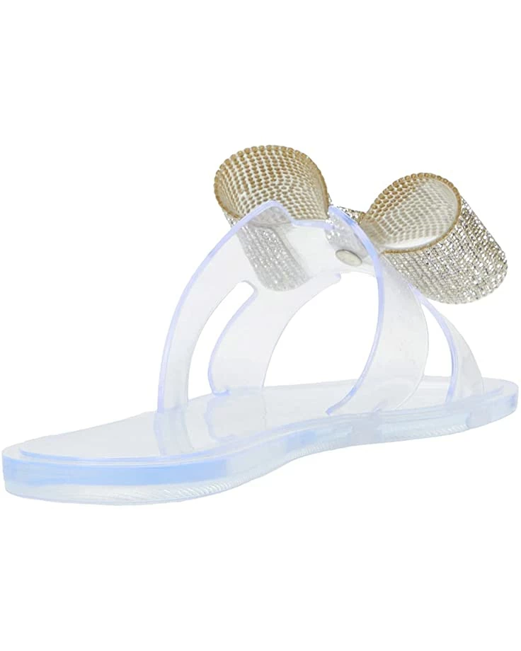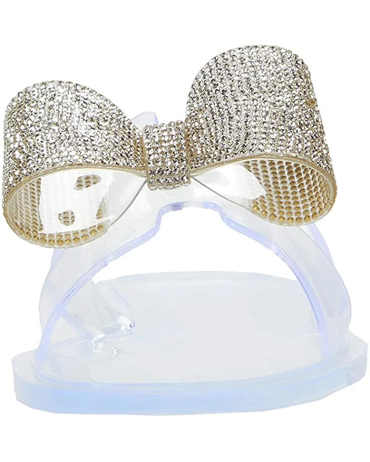 - Wide band strap extends over the foot with a sequined bow detail.