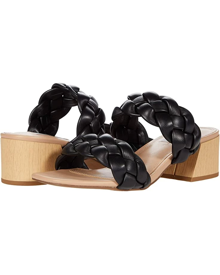 - Leather upper features two wide braided straps, with one across the bridge and one across the vamp.