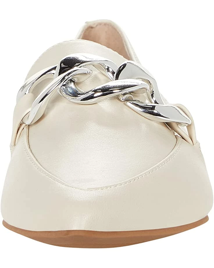 - Goldtone metallic chain detail on the vamp.