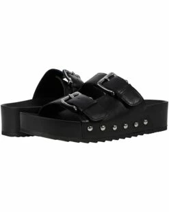 - Leather upper with adjustable buckle closures.