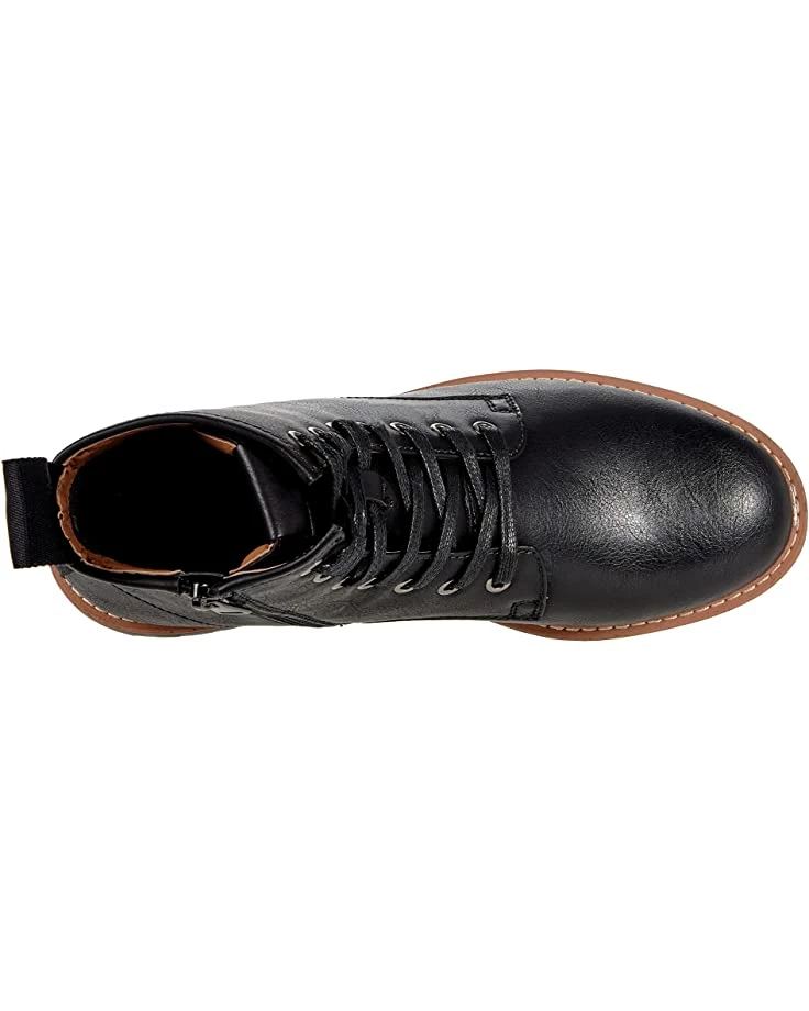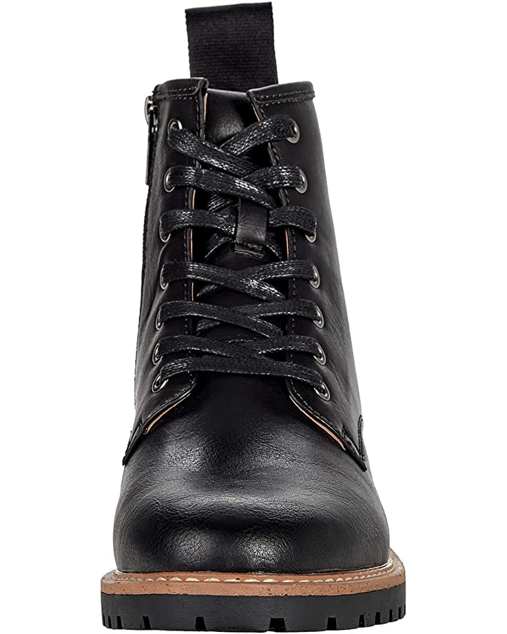 - Faux leather upper features lace up closure with side zipper for easy entry.